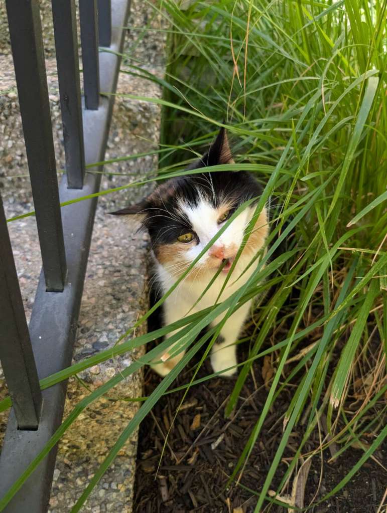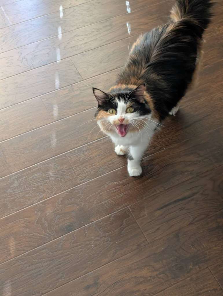 小Cookie今天又不乖了。她前两天吐了一次,所以我想把她放出去吃点草。一个没留神又让她溜了,在外面浪了俩钟头才回来。又给她拿湿巾手套擦了擦。以后再不能让她出去了。